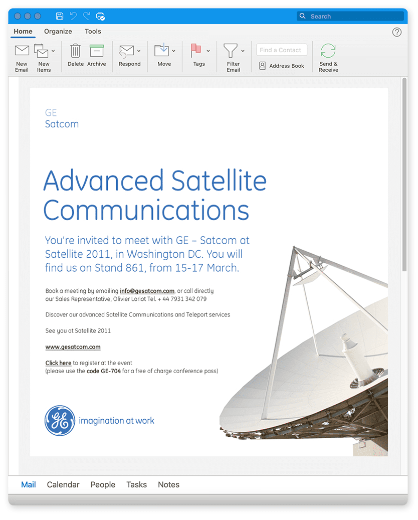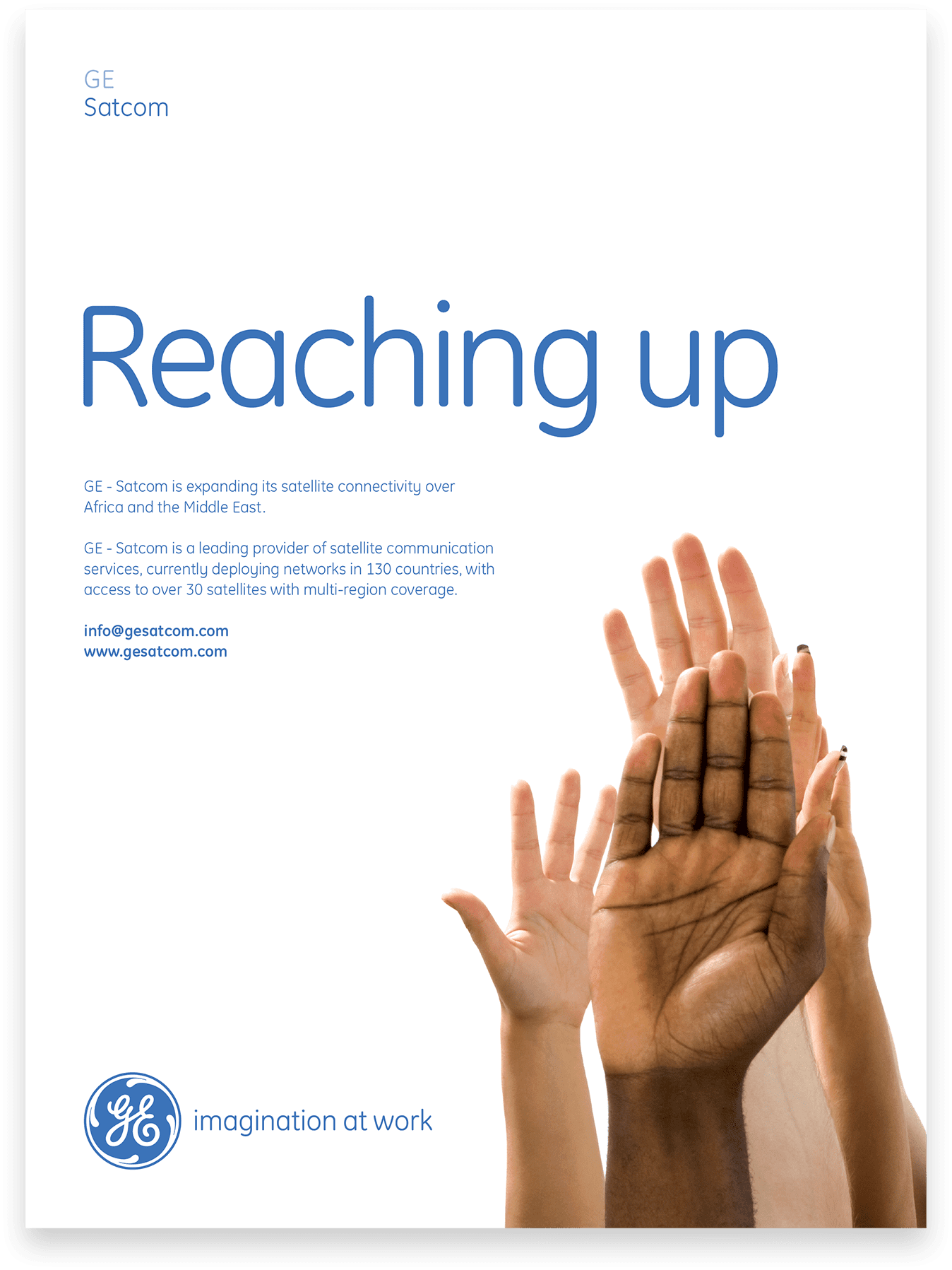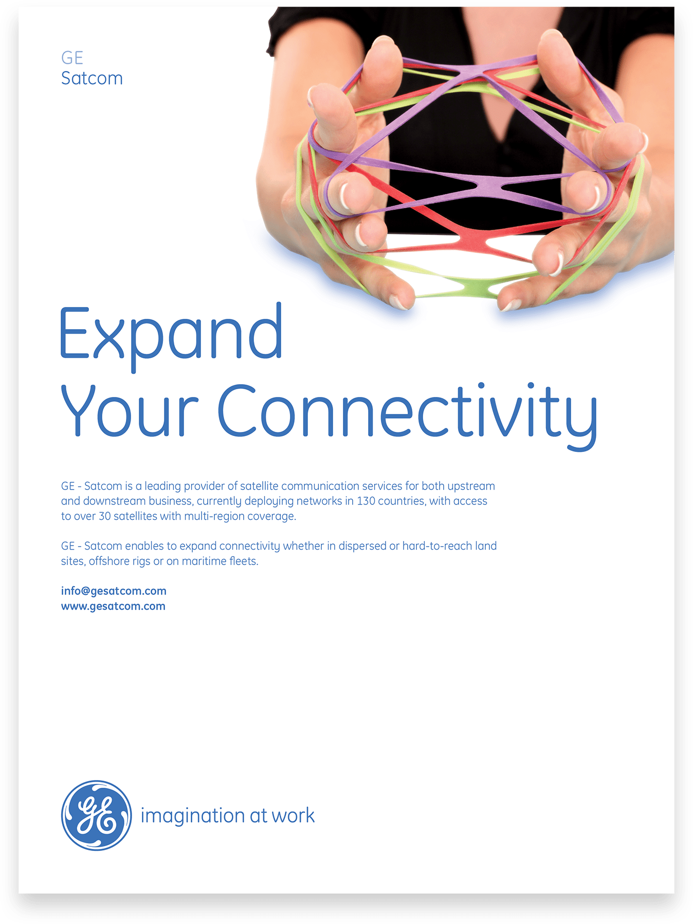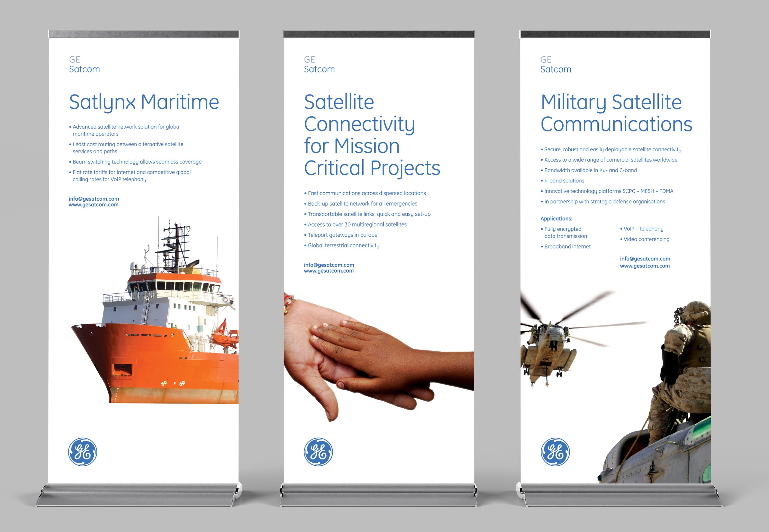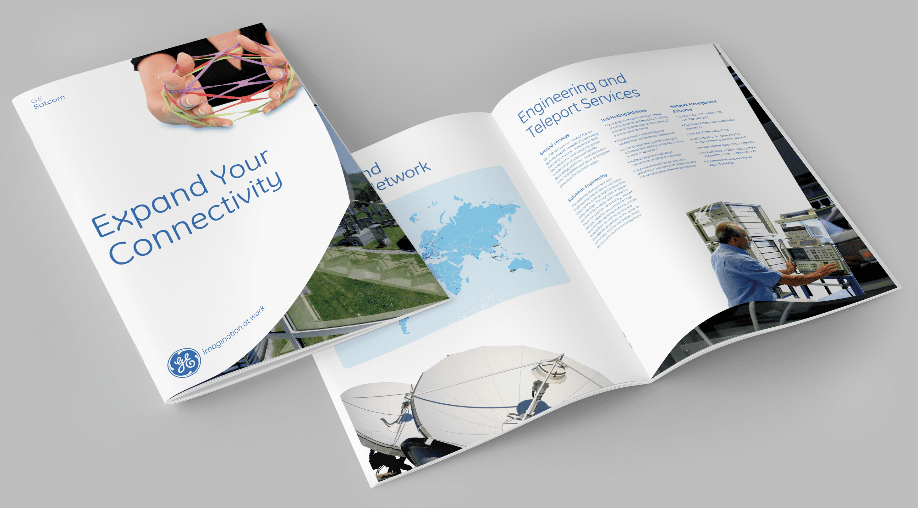 GE Satcom is a satellite communication service provider headquartered in Backnang, Germany, and has operations centers in Leuk, Switzerland. SockEm Design aided with strategy and several creative initiatives while adhering to GE’s brand guidelines and managing time zone differences between Europe and the United States.